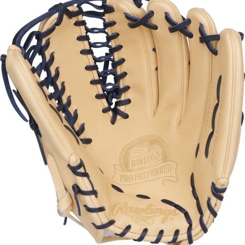 Rawlings 2025 Pro Preferred Series M. Trout Gameday Pattern 12.75-Inch Baseball Glove RHT Feel like a pro with this Mike Trout Pro Preferred outfield glove. This 12.75-inch glove features Trout's signature MT27 pattern with a Trap-Eze web, designed to hunt down the hardest-hit balls in the outfield. Crafted with flawless, supple kip leather, Mike turns to this high-performance glove that's durable and perfectly soft. The iconic Trap-Eze web has been the top choice of elite outfielders for more than 50 years. On top of that, this glove features 100% wool padding, which aids in pocket formation and shape retention over time. On the interior, Pittards sheepskin lining wicks away moisture and keeps your hands cool and comfortable all game long. Also, each Pro Preferred glove comes with an individual ID number, making your glove truly one of a kind. On top of all that, this glove sports a camel tan shell with black laces to flex a traditional look. This pairs nicely with the black and red script in the Rawlings patch. Rawlings Pro Preferred gloves represent the gold standard in premium baseball gloves, and you can feel the difference when you put one on. See why the game's best turns to the Mike Trout Pro Preferred outfield glove on gameday—get yours!