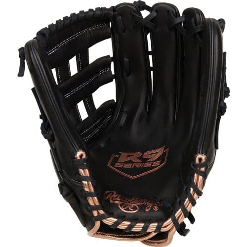 Rawlings 2025 R9 Series 13-Inch Softball Glove RHT The Rawlings R9 Fastpitch Series offers travel ball players unbeatable value for its quality, full-grain leather gloves. This 13-inch outfield glove features an improved fit with full-strap closures, helping you squeeze onto every ball hit into the gap. Additionally, the R9 series sports a quick and easy break-in to help with a game-ready feel at your convenience. For added impact protection, this glove is crafted with leather-cushioned palm padding, which helps reduce the chances of pesky stings. This outfield glove presents a Pro-H Web, ideal for curating a deep pocket to hold on to every ball. The black color on this glove highlights the beautiful rose gold accents, making it an irresistible glove to rep on the field. This Rawlings R9 Fastpitch Outfield Glove is the perfect glove for select and high school players looking to elevate their game without the premium price tag. Get yours today!