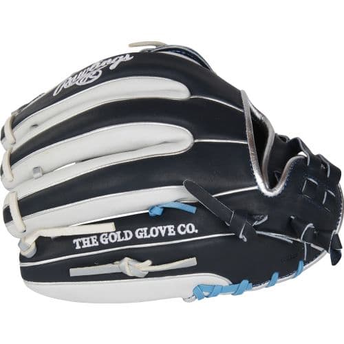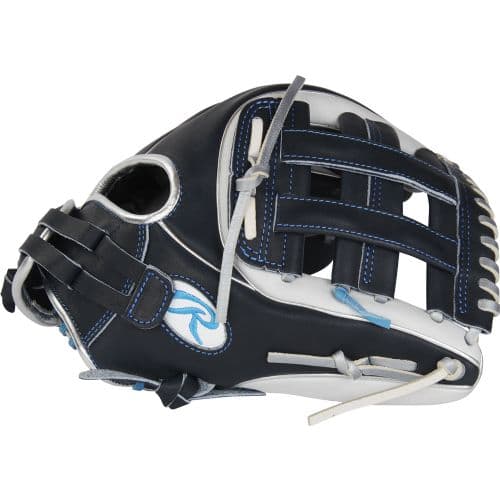 RAWLINGS HEART OT HIDE SOFTBALL GLV RHT Dominate on the dirt with this 11.5-inch Heart of the Hide Softball infield glove from Rawlings! Featuring a spacious and gracious H-web, this glove is perfect for snagging anything hit your way. Plus, it's crafted with ultra-premium Heart of the Hide leather, giving you the highest quality demanded by the game's best. The black and white colorway is accented by touches of Columbia blue to give this gamer some added flair, too! Get your Heart of the Hide softball 11.75-inch infield glove today.