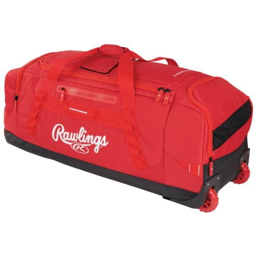 The Yadi 2 Wheeled Equipment Bag is perfect for coaches, catchers, or anyone who can flood the dugout with all their equipment! There is an abundance of storage options in this bag to make sure all your equipment stays safe and accessible. To start, there is a dedicated two-glove storage compartment to keep all your gloves safe and sound. There is no shortage of bat storage either, thanks to an internal bat storage compartment that fits up to six bats. On top of that, there's a ventilated internal cleat/turf shoe storage pocket to keep your kicks dry and fresh for any moment's notice. Additionally, the XL main compartment can fit an adult size catchers set and much more thanks to the two large mesh pockets, preventing your gear from spilling out and cluttering your bag. Lastly, there are five top & side pockets for additional storage to fit any personal items you may need for your next game. For ease of transportation, this equipment bag features an enclosed telescoping pull handle to make pulling your bag around the park painless. And thanks to the rugged red wheels with a reinforced support base to handle all terrain, you can keep your belongings secure even on those long walks up around tournament complexes. The Yadi 2 Wheeled Equipment Bag is the ultimate equipment bag to handle all your gear and help you stay organized. Get yours now!