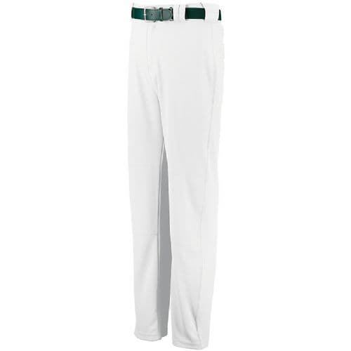 Russell Athletic Boot Cut Game Pant 100% polyester double knit. "R RUSSELL" back left hip. Elastic waistband with tunnel belt loops. Two-snap closure. Zipper fly. Two set-in double welt back pockets. Double stitched crotch gusset and reinforced knees. Open bottom boot cut design. Graded inseam. Available in custom braid options.