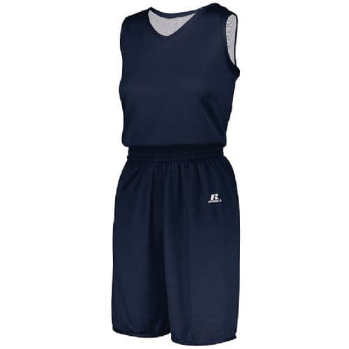 Russell Athletic Ladies' Undivided Reversible Jersey UltraLite 100% polyester fabric, not bonded or fused, true single ply technology. Dri-Power® Moisture Wicking Technology. Ladies' fit. Covered waistband with inside elastic drawcord. Ladies Inseam- 7". Jersey Top only! For Basketball Short, please view RT5R8DLX.