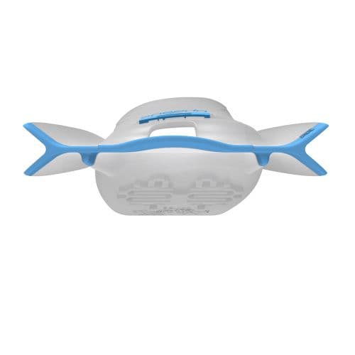 - Top of fin, off-center, drain chute for fast kicking.