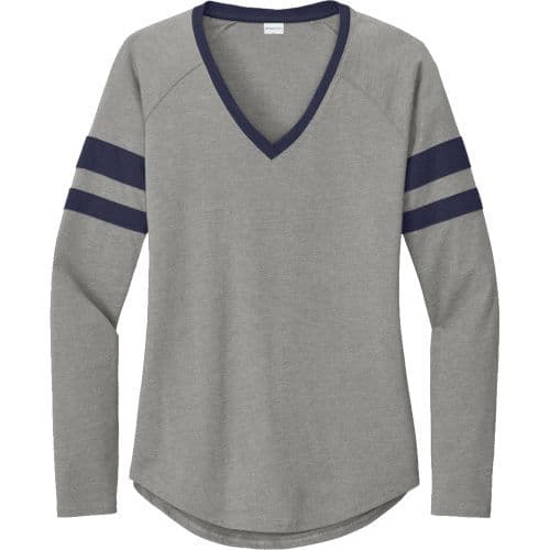 Sport-Tek Women's Halftime Stripe Long-Sleeve V-Neck T-Shirt