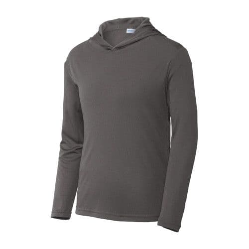 This lightweight hooded pullover locks in color and wicks moisture. Its versatile enough for year-round wear.