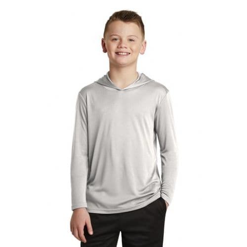 This lightweight hooded pullover locks in color and wicks moisture. Its versatile enough for year-round wear.