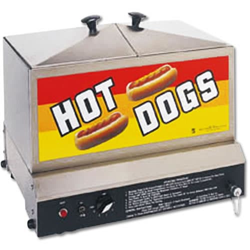 A ball game and a hot dog tend to go hand in hand. Make your concession stand the center of the action this season with the Gold Medal® Steamin' Demon Hot Dog Steamer. With room for up to 80 hot dogs and 40 buns, you can serve dogs up quickly and keep fans coming back for more during the next game-time break. Keep the steamer on the countertop for easy access, and advertise to potential patrons using the steamer's side panel decals. When the game has ended and the crowds are headed home, the hot dog juice tray and stainless-steel design make it simple to clean up and head home yourself.