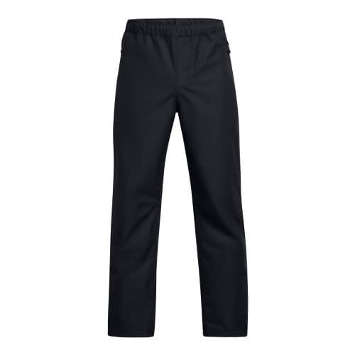 UA Men's Lined Rain Pant UA Storm technology repels water without sacrificing breathability. 2-Layer outer fabric with fully taped seams is 100% waterproof and windproof. interior woven lining for added comfort and warmth. Encased elastic waistband with internal drawcord adjust. Secure, zip hand pockets. Leg zips with snap closure for easy on/off, even over cleats. 100% Polyester.