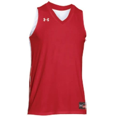UA Youth Crunch Time Jersey Traditional solid color tank body and short, all 4-way stretch textured HeatGear Polyester. Hemmed armholes and bottom. Aggressive colorblocked neckline. 4" Colorblocked side panel with chevron design. 3" Side vents. Shorts have 2" deluxe Under Armour exposed elastic 4 needle grippy waistband with flat lace drawcord. Inseam: Men's 10", Youth 8".