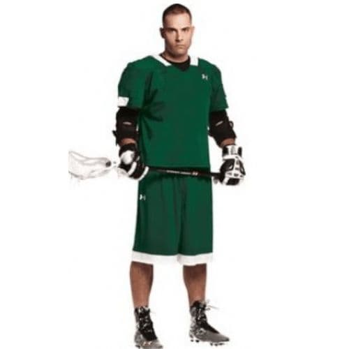 UA Youth Toli Lacrosse Short Solid color body, single ply body short with contrast color inserts at bottom hem. Self-material performance leg gussets.  Self-material contrast color 2-inch leg opening inserts. Four needle, 1-1/2 inch covered elastic waistband with flat lace drawcord. 9-inch inseam.