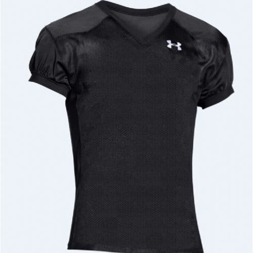 Athletes can bring their A game from the huddle to the end zone when they play in this Under Armour® Rollout Stock Men's Short-Sleeve V-Neck Football Jersey. Quarterbacks will stay comfortable as they connect with wide receivers for incredible completions and touchdowns thanks to the mini-porthole mesh construction that delivers cooling ventilation play after play. Defensive players can sack the QB or use their muscle for a hard tackle, as the tough fabrication prevents ripping or tearing.