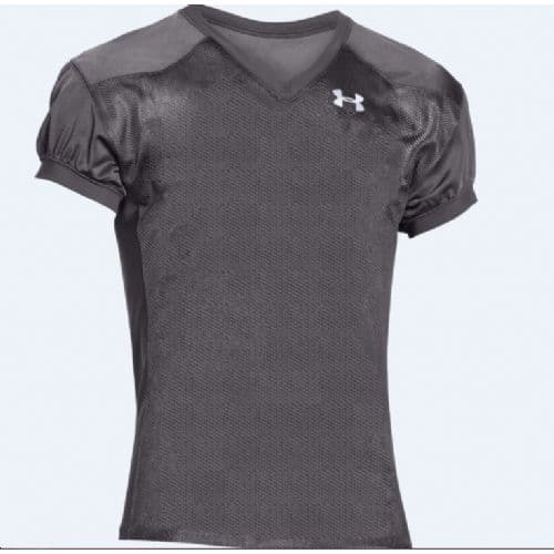Athletes can bring their A game from the huddle to the end zone when they play in this Under Armour® Rollout Stock Men's Short-Sleeve V-Neck Football Jersey. Quarterbacks will stay comfortable as they connect with wide receivers for incredible completions and touchdowns thanks to the mini-porthole mesh construction that delivers cooling ventilation play after play. Defensive players can sack the QB or use their muscle for a hard tackle, as the tough fabrication prevents ripping or tearing.
